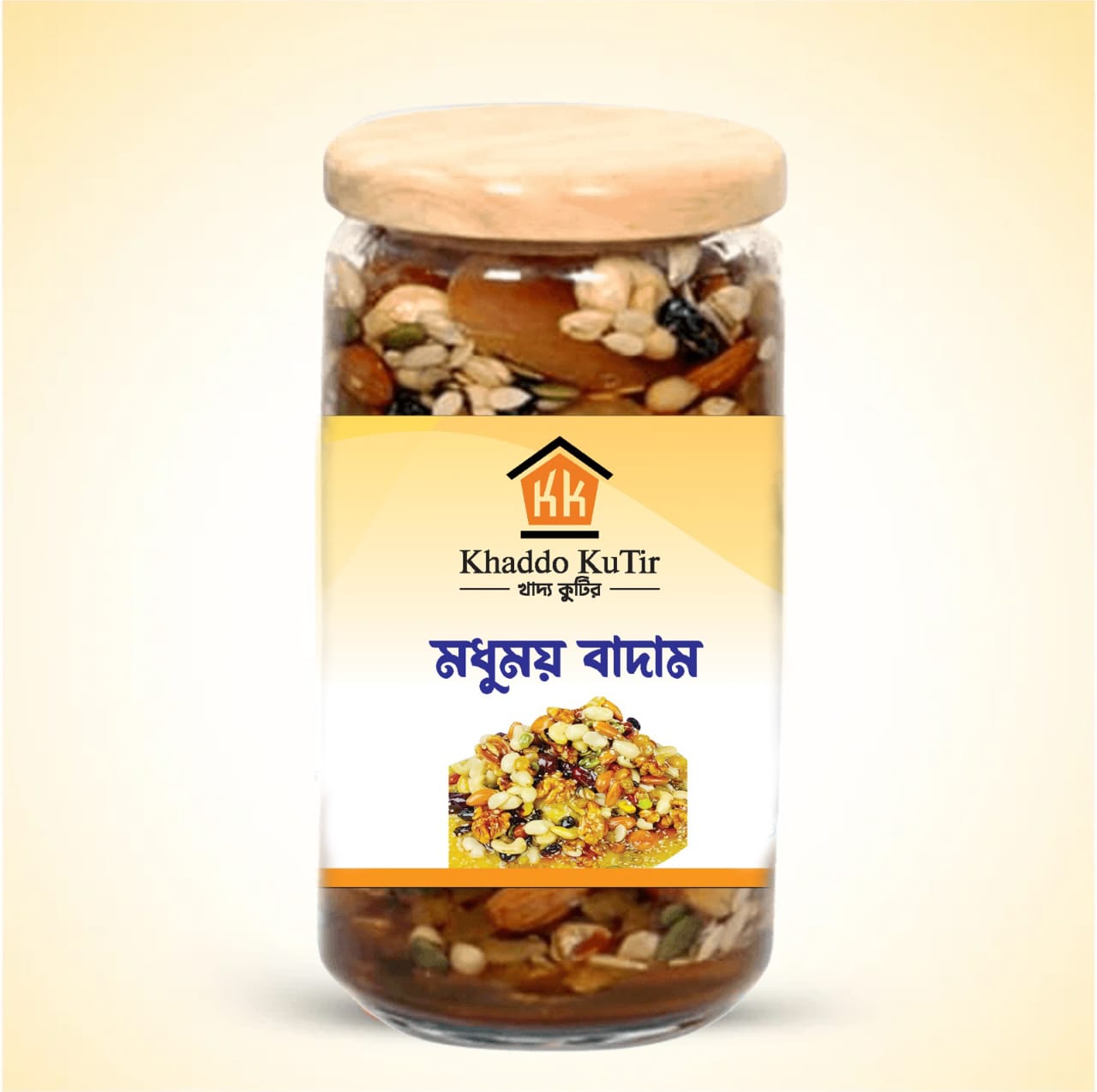 মধুময় বাদাম হল এক প্রাকৃতিক, স্বাস্থ্যসম্মত এবং স্বাদে পরিপূর্ণ খাবার, যা আপনার প্রতিদিনের স্ন্যাকিং-এর জন্য আদর্শ। শুদ্ধ মধুর সুমিষ্টতা এবং প্রিমিয়াম মানের বাদামের পুষ্টিগুণ একত্রিত করে তৈরি করা হয়েছে এই অনন্য খাবারটি। এটি শুধু মুখরোচকই নয়, স্বাস্থ্যকর জীবনযাত্রার অংশ হিসেবে এটি অসাধারণ পুষ্টিমূল্যও প্রদান করে।